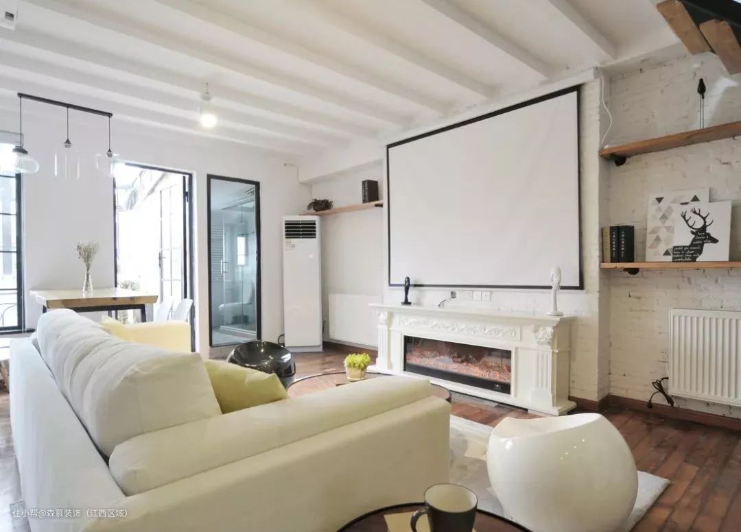 20、用木质的木皮张贴横梁,再做个假梁上去,看起来也挺自然美观。