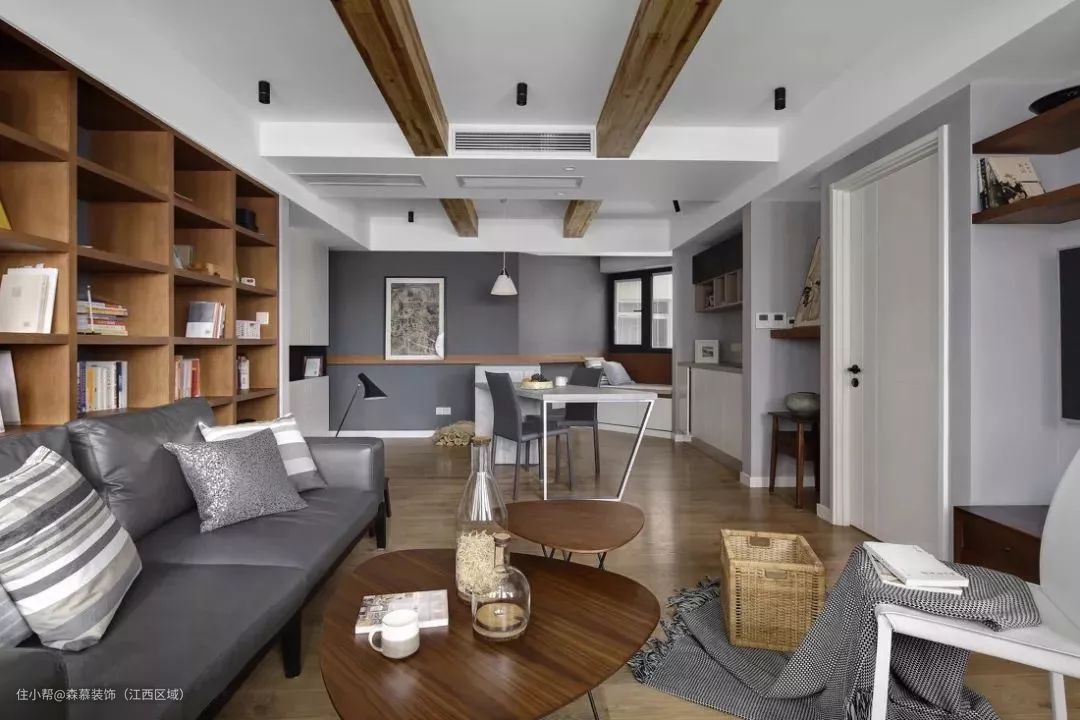33、对于层高较大的空间,直接不做处理的横梁,其实看着也还大方。