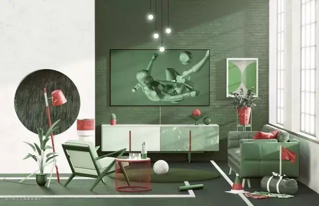 关于色彩使用的比例,可以选择小空间(如厨房、餐厅、儿童房)使用,也可以选择整体墙面使用哦~