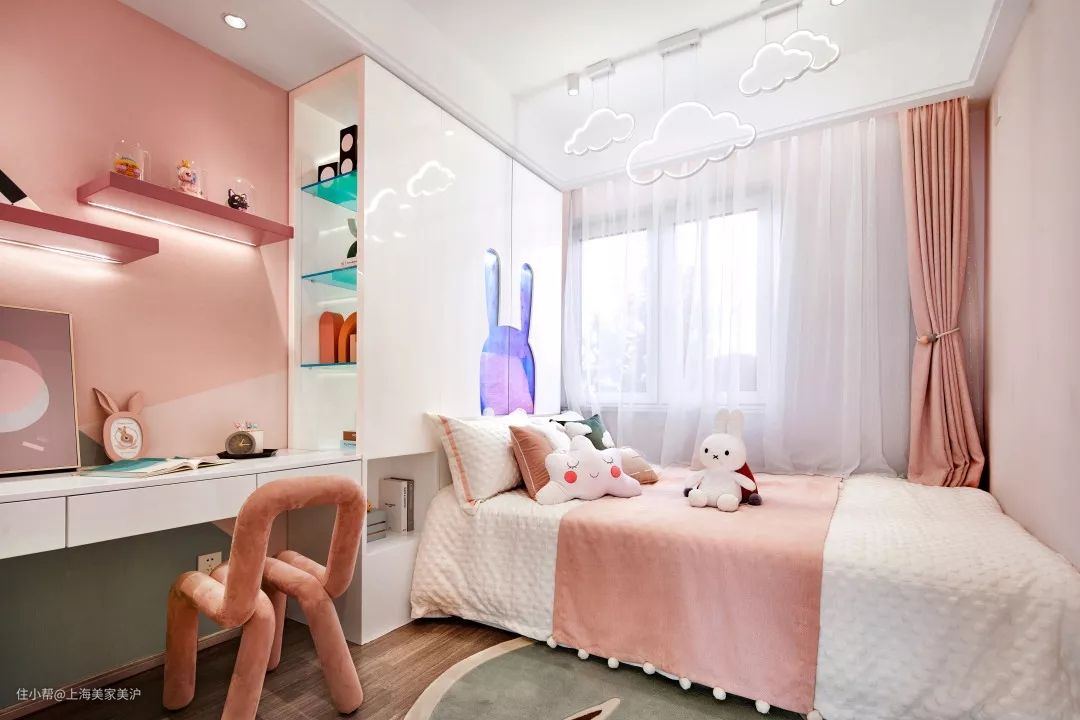 粉色系的马卡龙色,让人想起棉柔轻盈的触感,将这样的粉色系用于居室中,细腻浪漫的情怀扑面而来。在以简约风为主审美的当下,纯净的少女粉还可传递出干净清爽居住感。