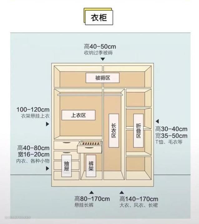 卧室衣柜最好做到顶。如果柜门是滑门那就需要预留7.5~8cm。衣柜的踢脚线一般都是比墙高出5cm,如果不知道墙踢脚线多高可以按10 cm算。