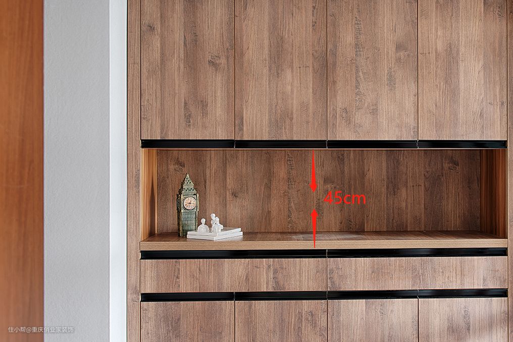 还有一种常见的鞋柜设计是中间留空,一般会放钥匙、卡片、伞等杂物。这种高度也是有讲究的!保持空位高度45 cm左右,这样不但方便我们拿取放东西,视觉上也更容易找到物品。