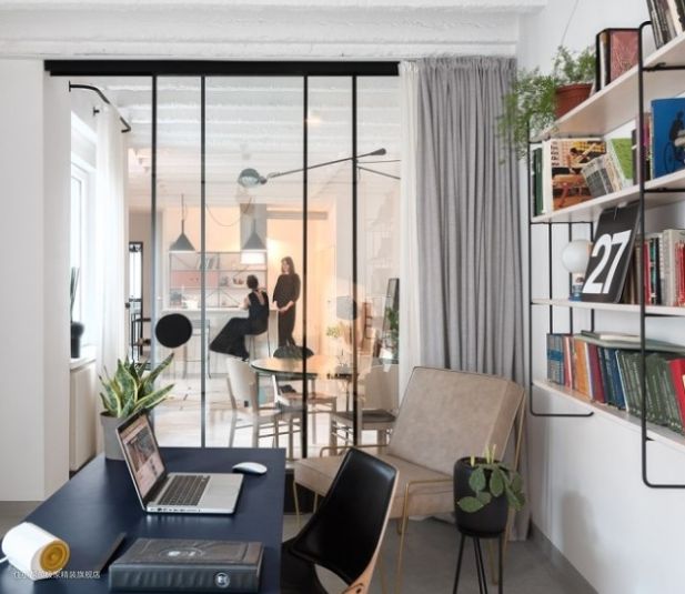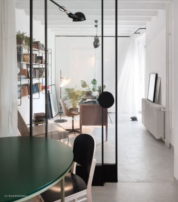 书房及公共空间围绕在主体空间周围,通过玻璃推拉门进行空间分割,在保持良好采光性能的同时,增加了空间的连贯性与通透感。