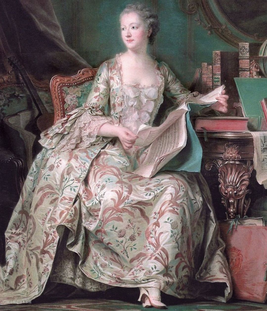 粉色在其黄金时期洛可可时期(18世纪)成为了世界流行色,它特别受到法国路易十五国王的情妇庞巴杜夫人喜爱,当时的欧洲贵族也大都钟情于这种柔和的色彩。