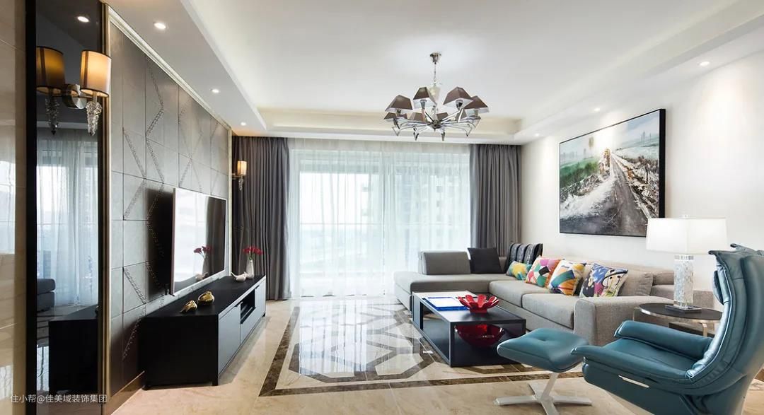 客厅电视柜可以定制一个到顶的柜子,这样就不用另外考虑墙面装饰了,直接装定制一个大柜子,这个电视柜可以用来装饰背景墙,同时又可以增加很多收纳空间,现在也很多人家里采用这种设计。