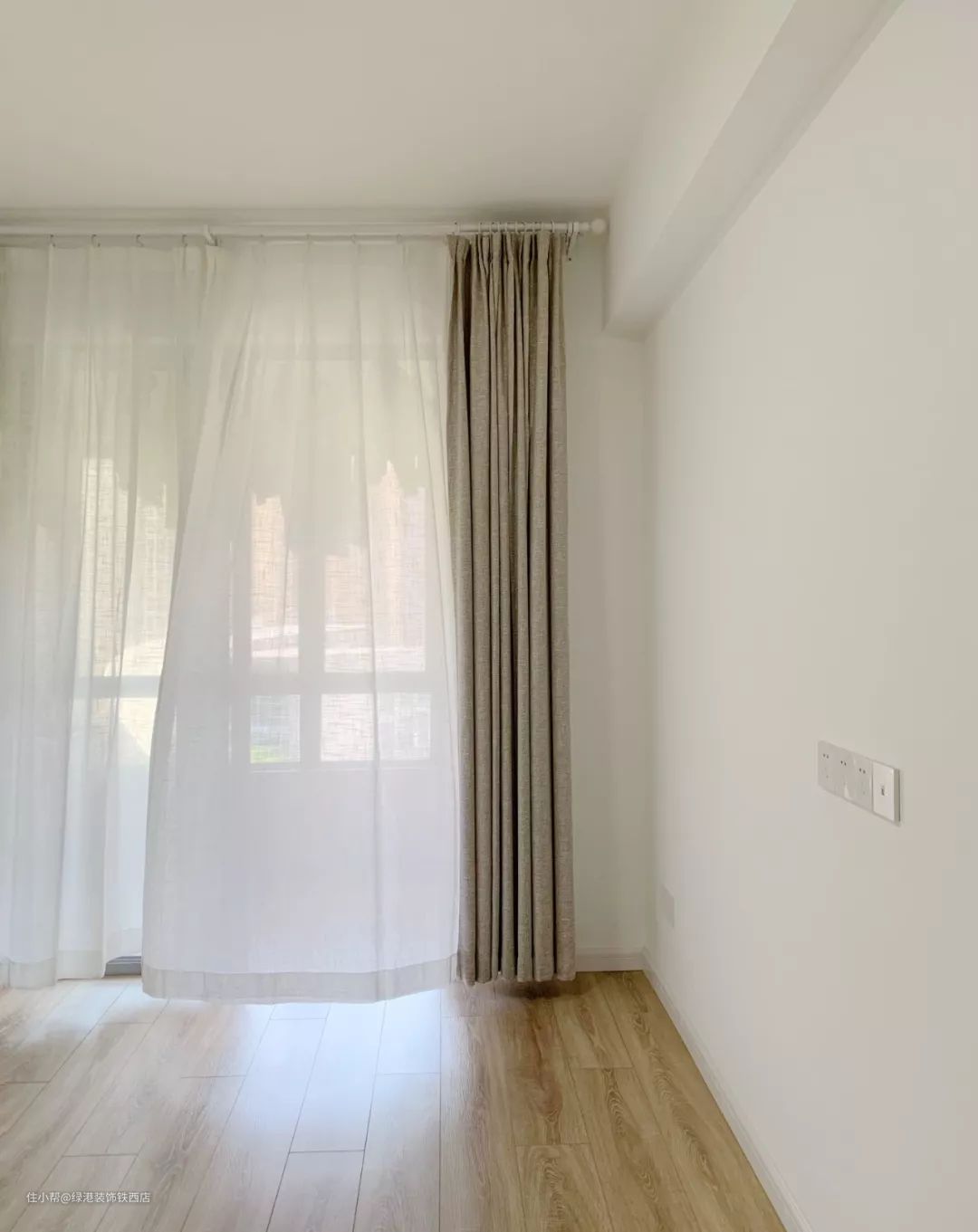 卧室是清爽的白加木色,床头灯通常是早睡的那个为晚睡的那个留的灯~