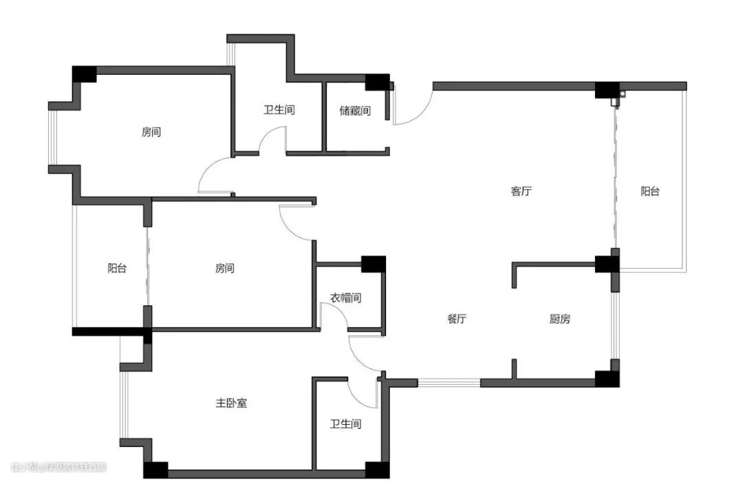 原户型优点是南北通透,三个房间朝南,厨房和客厅朝北。