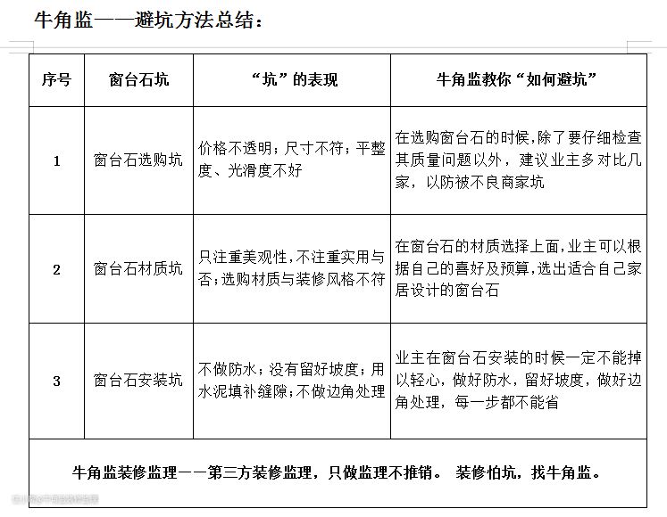 窗台石坑一:窗台石选购坑 (致命等级:★★★)