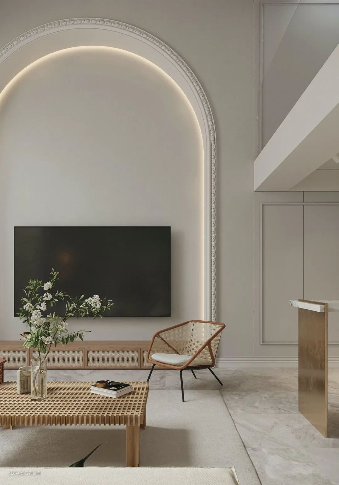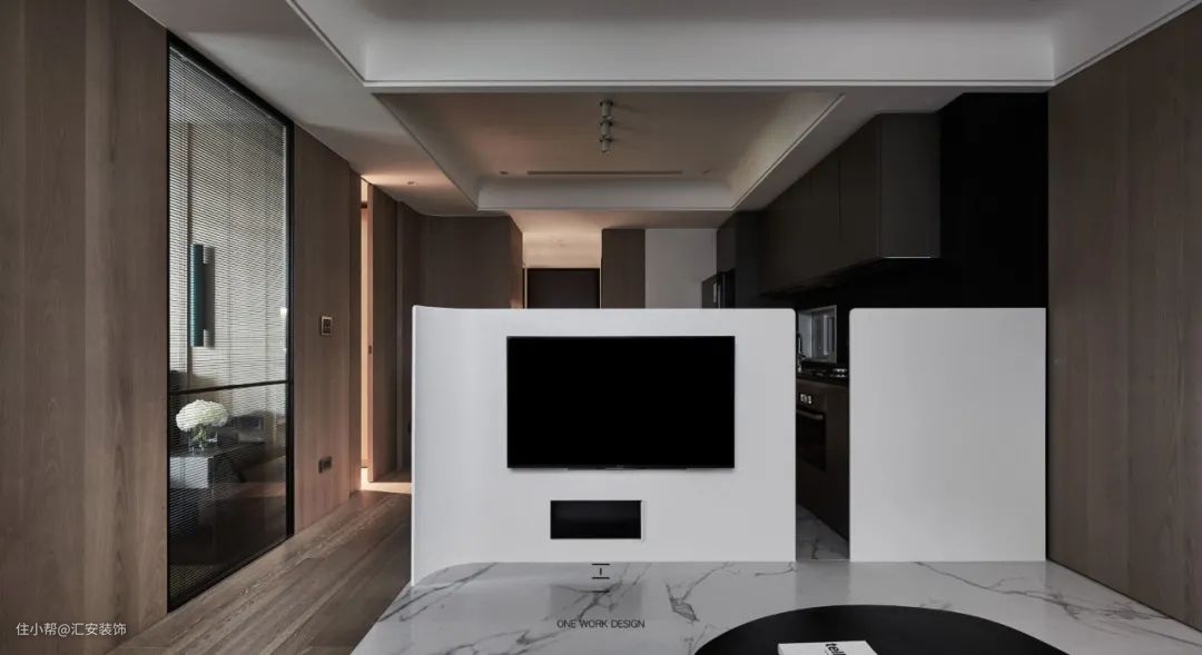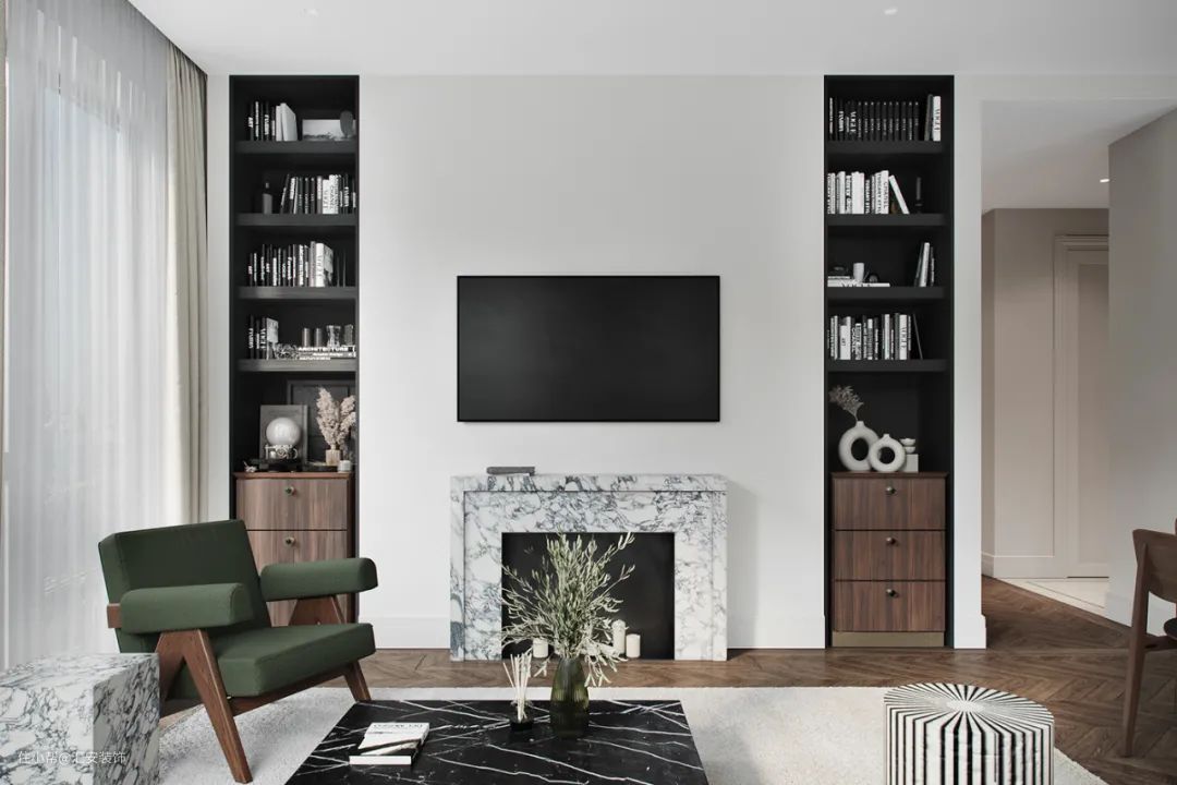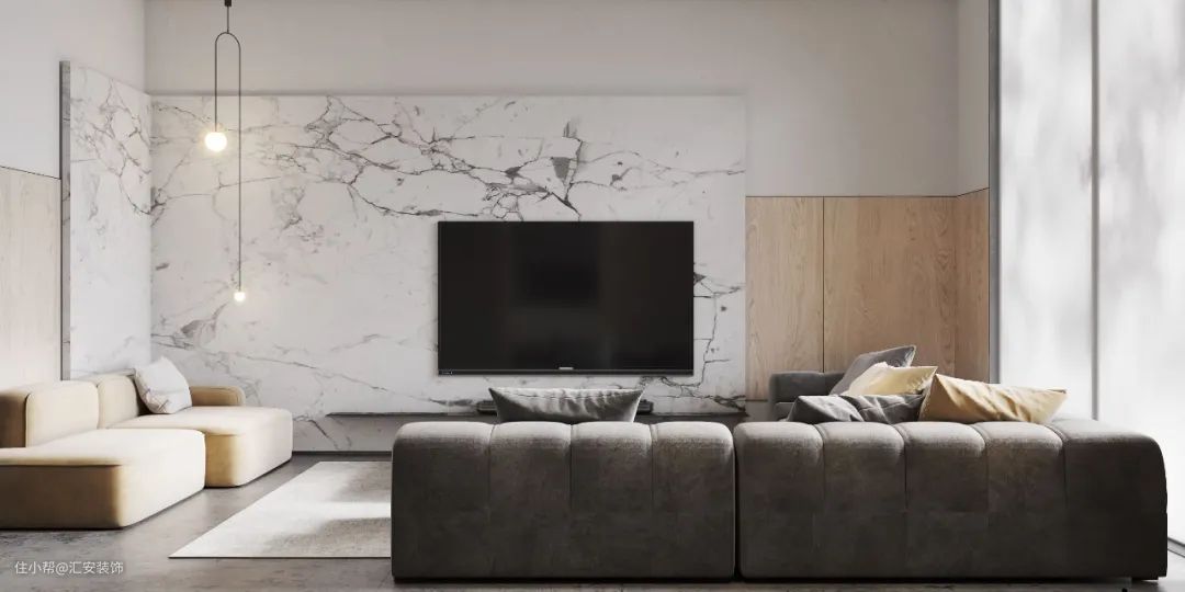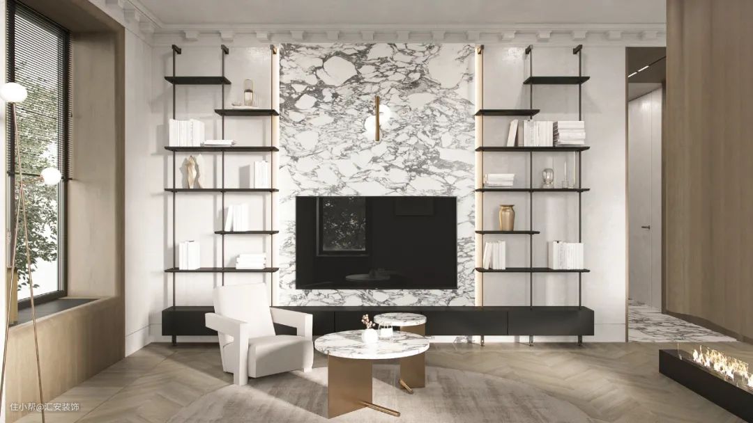大理石的天然花纹、光泽、质感都非常优越,且大理石具有很高的可塑性,可以加工任意形状。将优雅的大理石花纹融于背景墙的设计,呈现出不俗的艺术感。