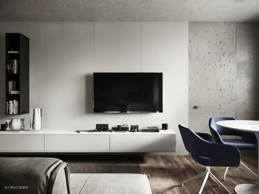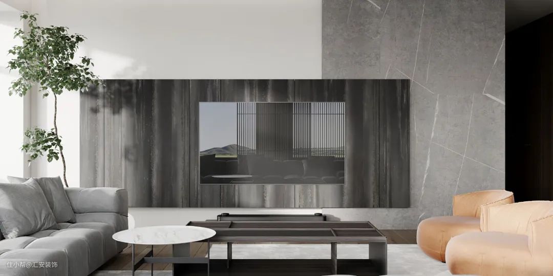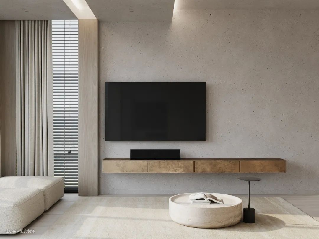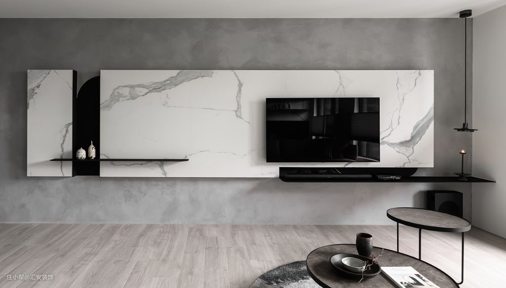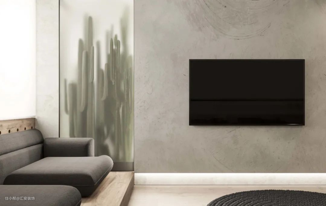 艺术涂料在家居中的应用非常广泛,电视墙使用的话可以更好地贴合整体设计风格。极简风格下无造型背景墙使用颇多,同时可以使用几种颜色拼接或者与其他材质混搭。