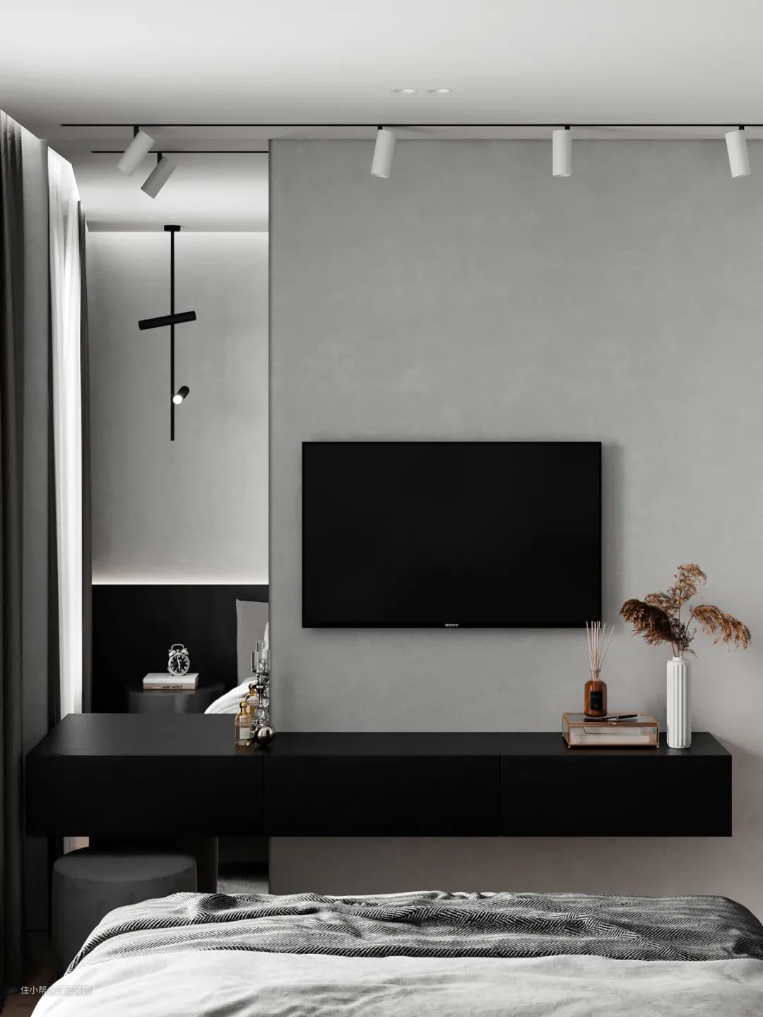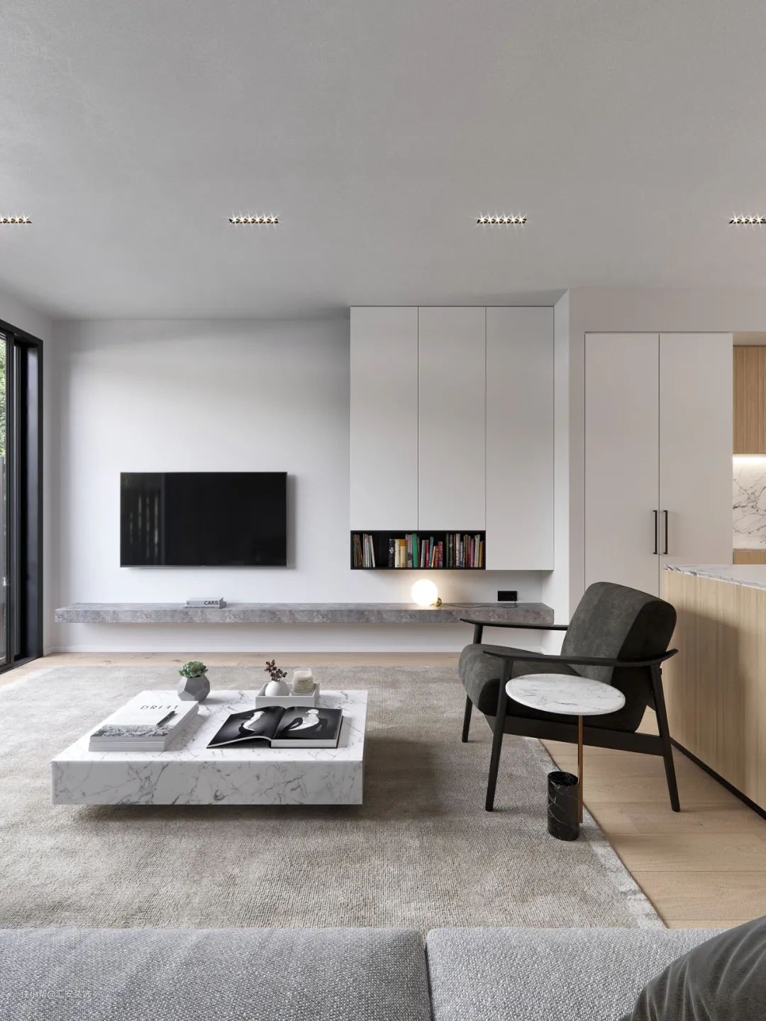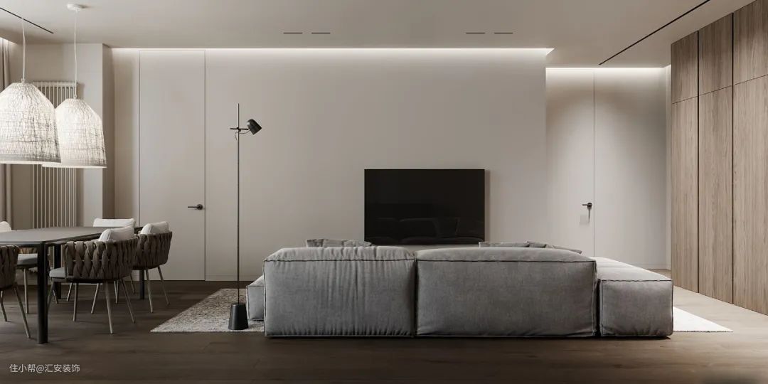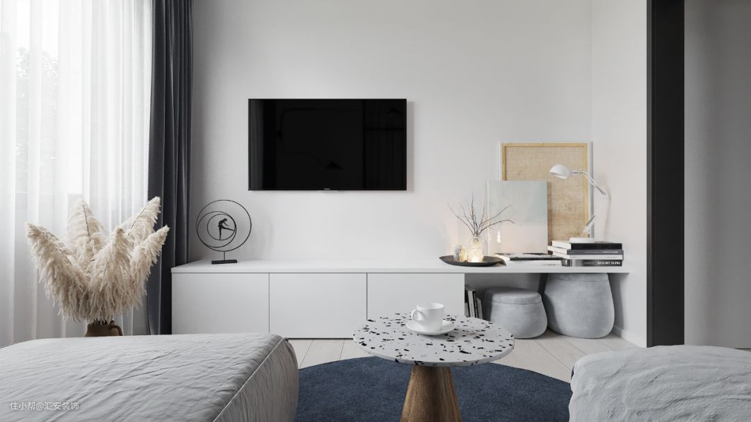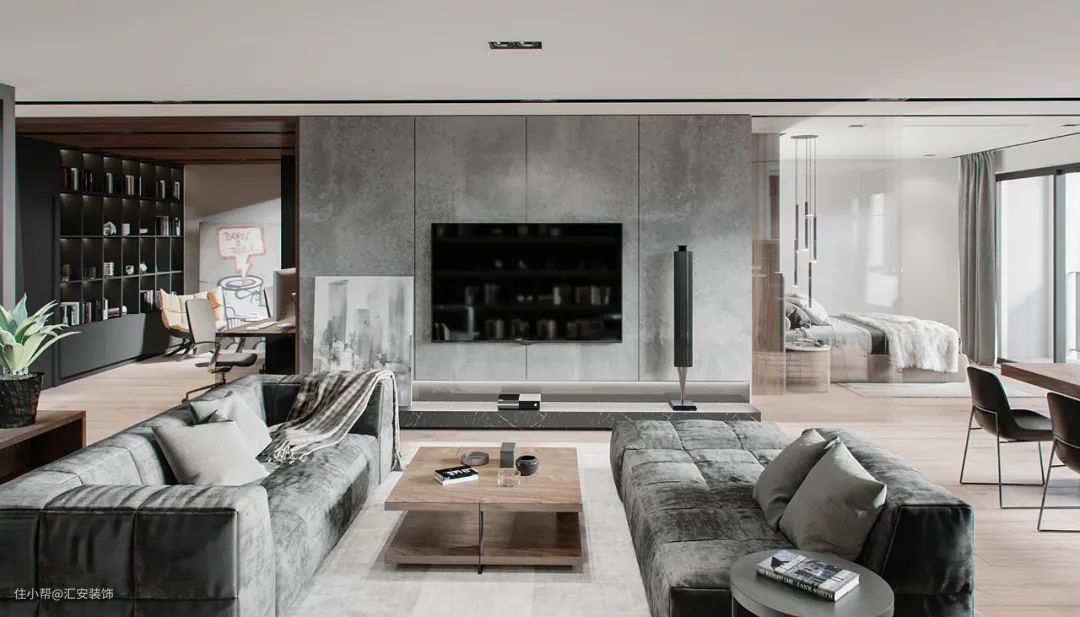 艺术涂料在家居中的应用非常广泛,电视墙使用的话可以更好地贴合整体设计风格。极简风格下无造型背景墙使用颇多,同时可以使用几种颜色拼接或者与其他材质混搭。