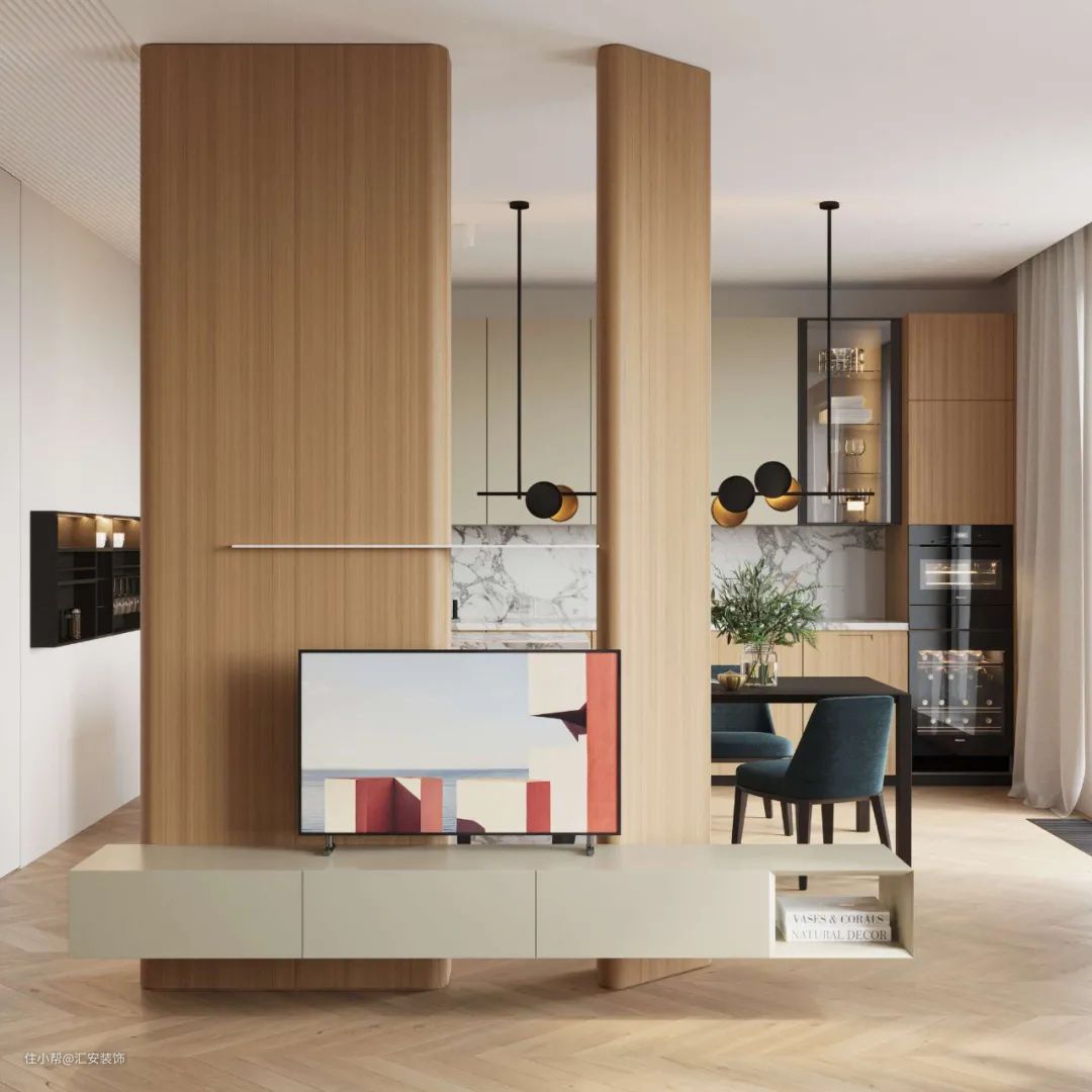 木饰面的用途非常广泛,也很百搭,可以切换在不同的装修风格中。使用木饰面做电视背景墙可以更好地融入家具风格,木饰面的超高可塑性也决定了他可以适用于多种不同的造型,用来定制背景墙可以说是非常适合了。