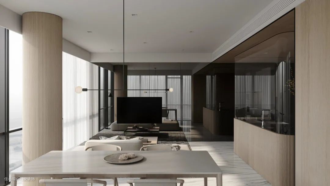 运用墙体造型,搭配金属、饰面,玻璃等材质,在墙面呈现出不同的造型及纹理,与整体空间风格相呼应,同时可以提升空间的档次。