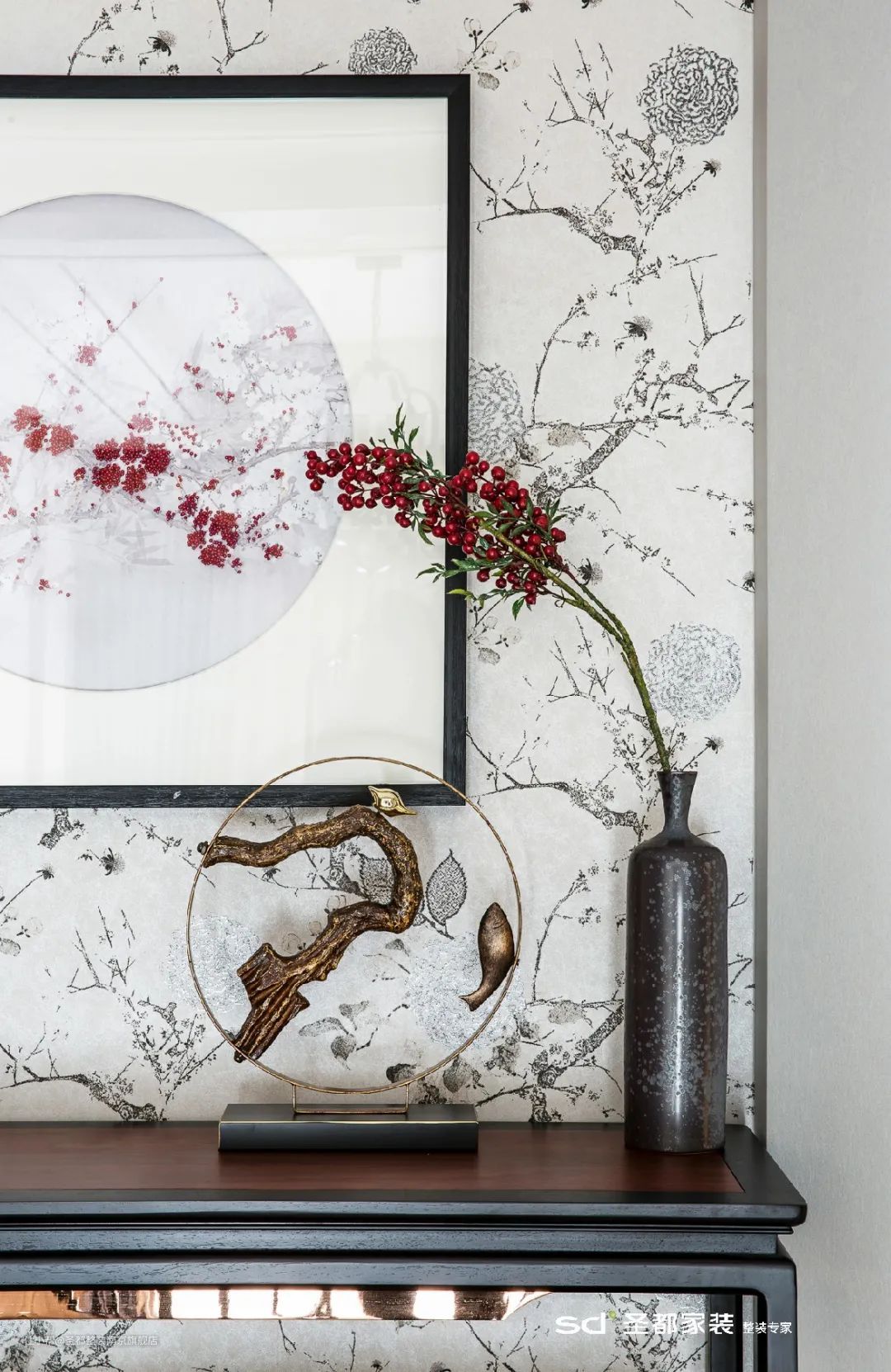 花鸟画灵动活泼,让沉稳的空间格调有了活力。
