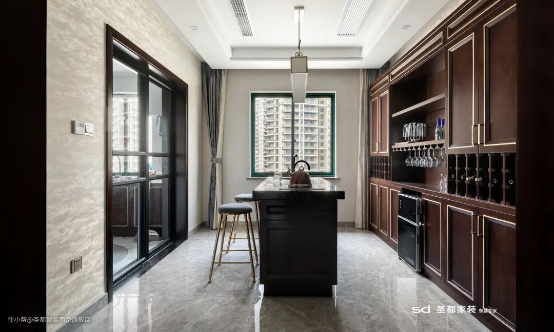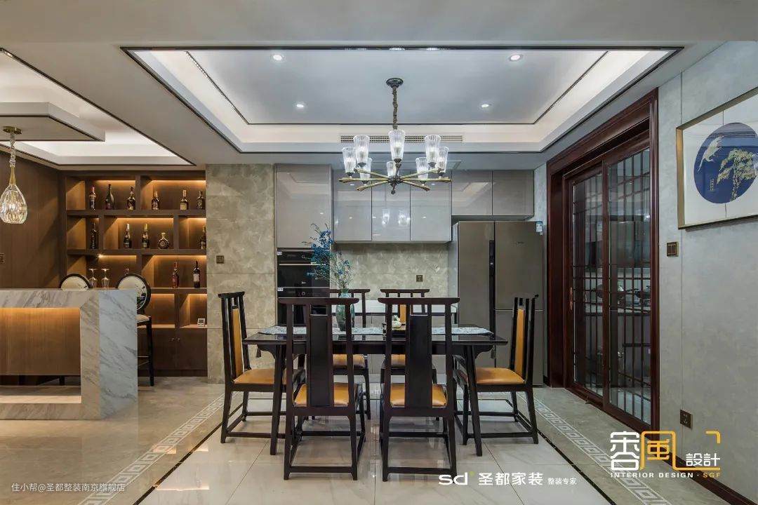 舍弃传统中式的繁复雕花,保留了利落的线条美感,更简约,也更具层次感。