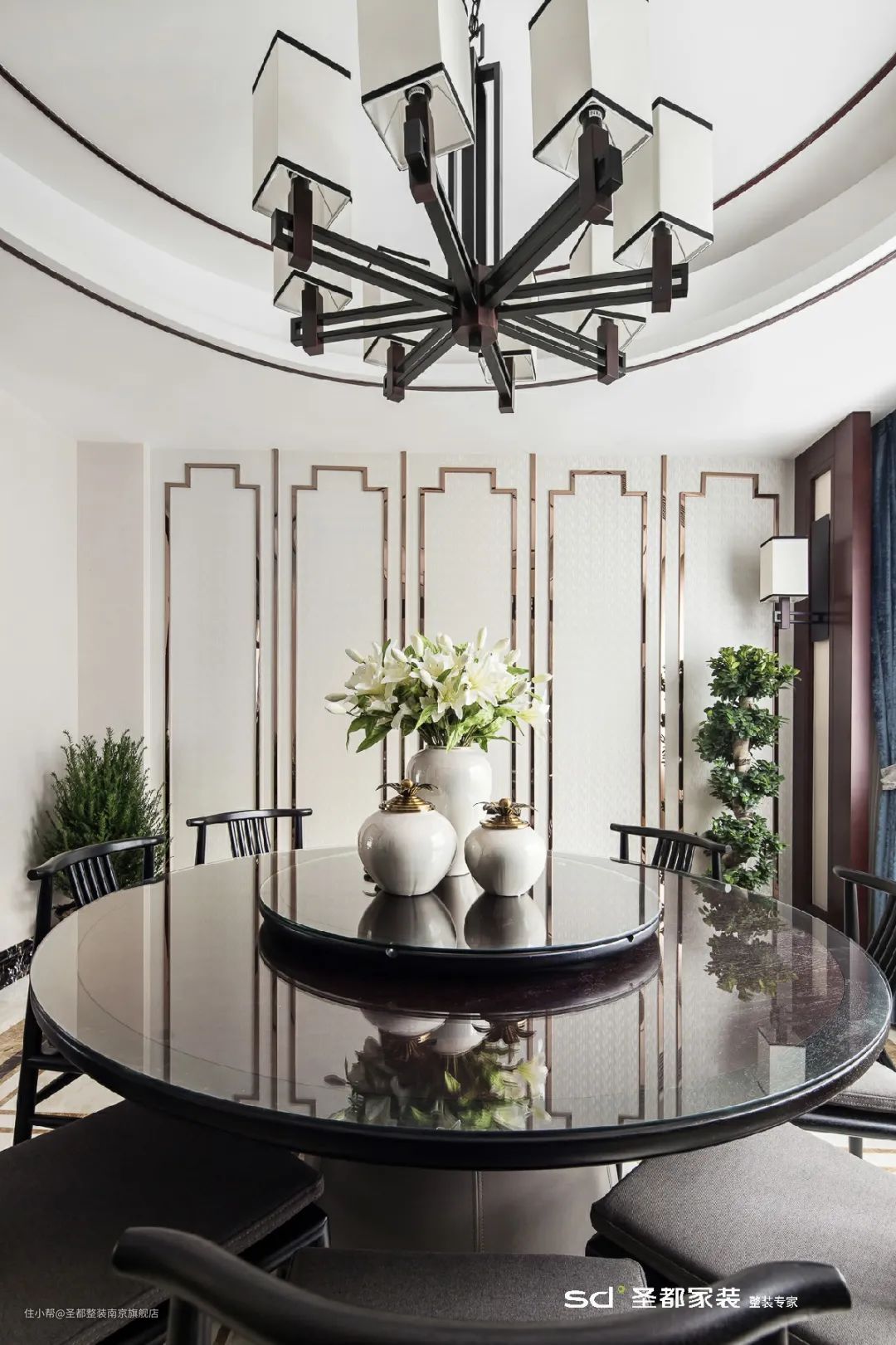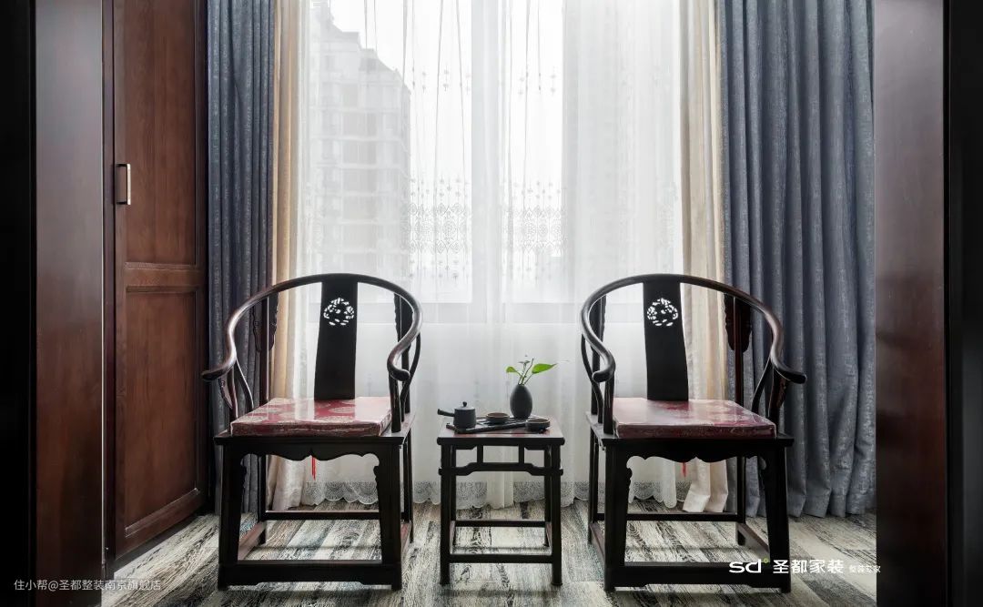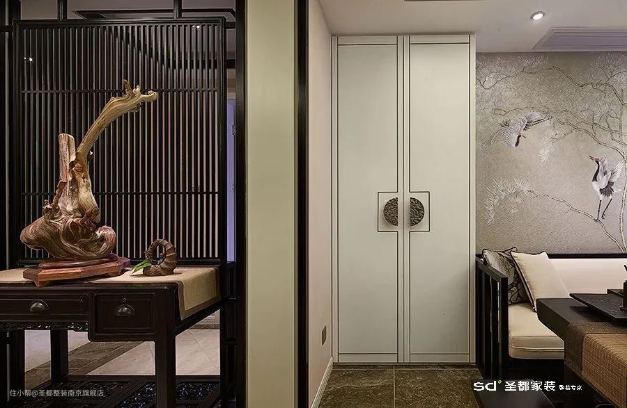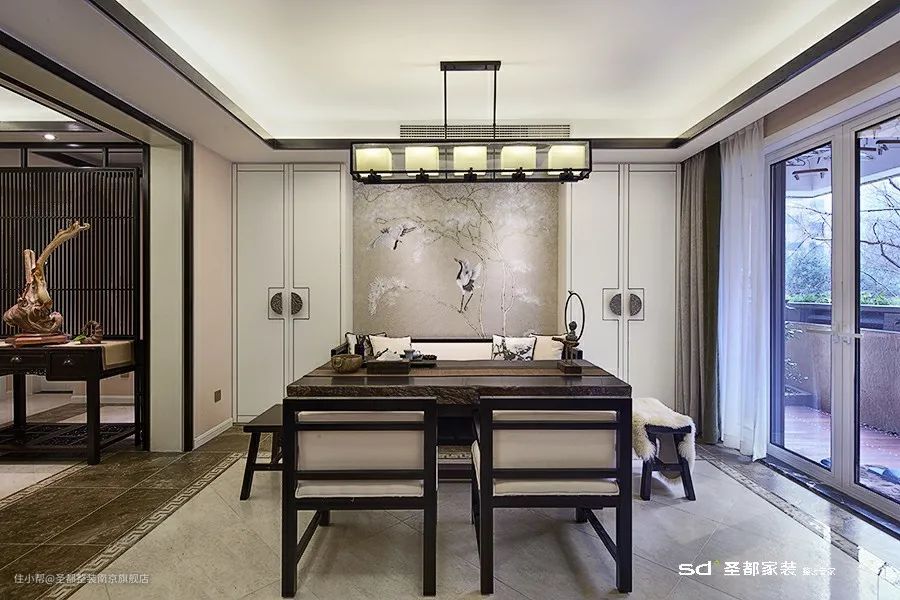 在新中式的家居设计中,非常考究的一点就是「对称设计」。