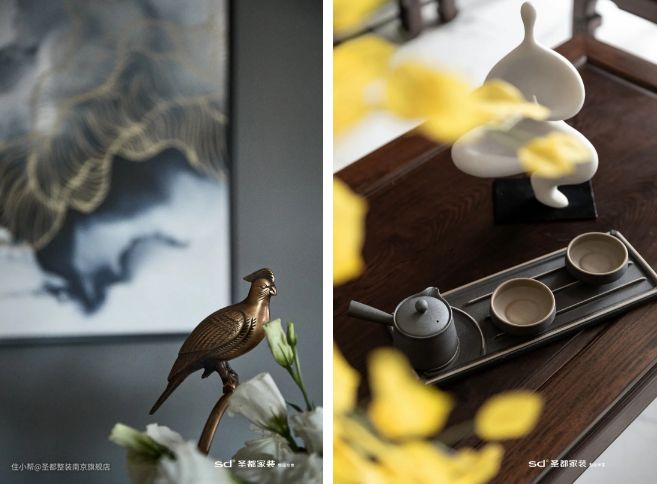 在配饰的选择上,需要与风格、空间配色相和谐,注重意境之美。