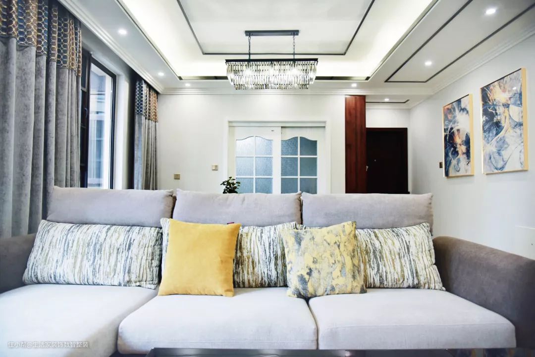 浅灰色布艺沙发坐落于此,老派低调,与夺目的水晶灯形成鲜明的对比,平衡了空间的层次感,使之更加和谐。