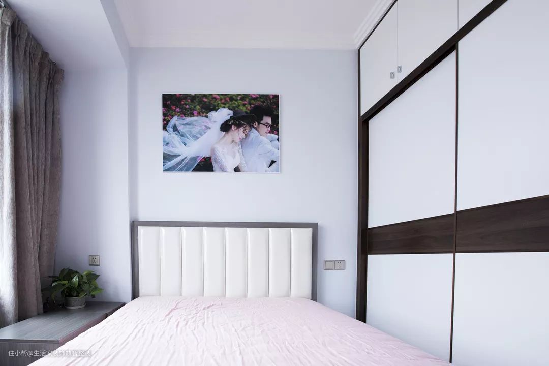 次卧不常使用,但女主人依然毫不吝啬地为它设置了巨大的衣柜,衣柜采用日式的推拉门风格,使用起来很方便。主要用于存放一些换季的衣物和床品,从某种意义上,可以将次卧当做是独立的衣帽间。