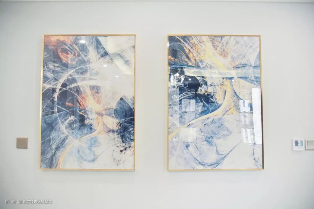 因为户型的原因,入户玄关并没有刻意地设计,进门右手边是高低柜的设置,满足了日常储物的功能。因为户型为横厅的结构,开间很大,玄关左侧的画框很好地处理了墙面的空白,使视觉得到延伸。