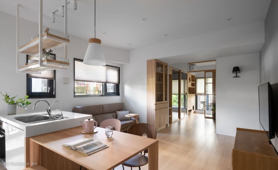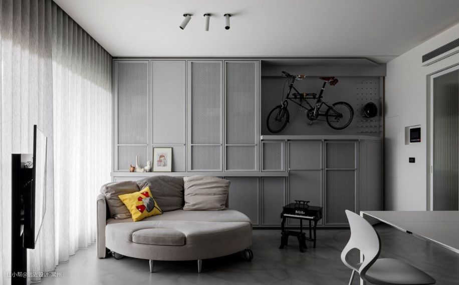 装潢时最令人烦恼的问题之一,就是室内到底该隔几间房,才能满足一家人的需求,又不会显得空间太过拥挤。在轻装修的时候,不妨考虑运用收纳柜来作为轻隔间使用,一方面可以提供摆放物品的收纳机能,另一方面也能够维持格局的轻盈通透感,在若隐若现间,保留了光线及视线的高度自由。