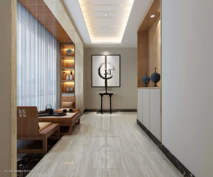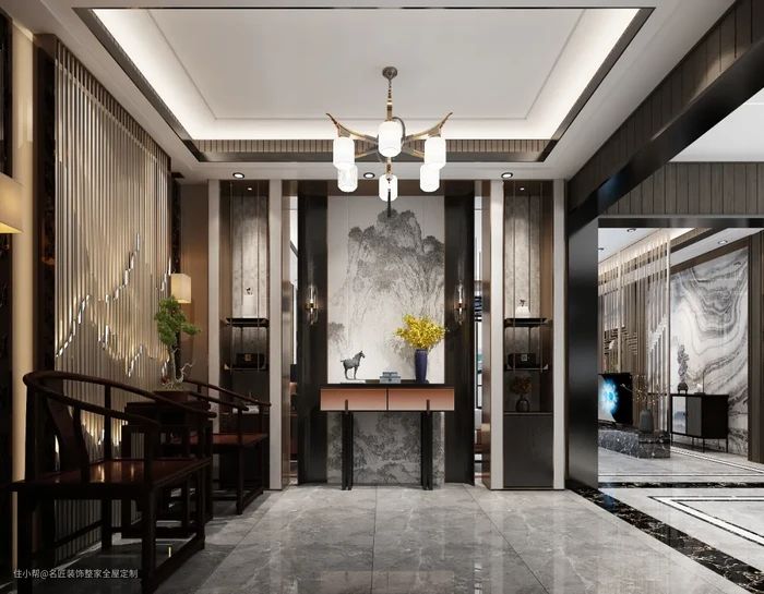 给大家看一些新中式玄关美图,东方韵味~