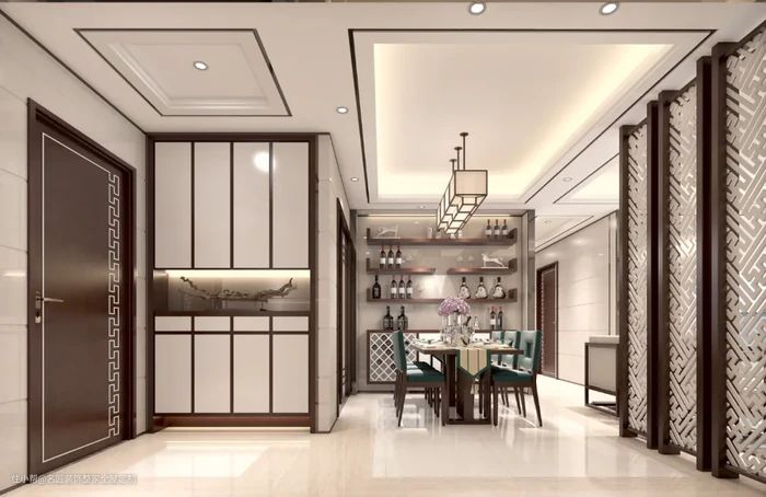 玄关用通透的镂空装饰来修饰,在保持客厅的隐蔽性的同时,要保持与整体空间的通透性。