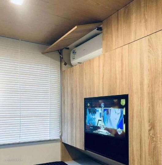 02.可以做窗帘盒,将插座和管线隐藏在窗帘盒中,或者定制家具时,将空调考虑进去,可以制作空调柜,将空调做进柜中;