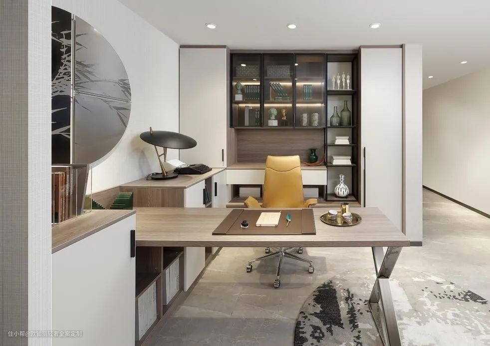 书房的台灯与卧室的不同,在色温的选择上,需要选择接近自然白光的偏冷色调,这样的光线显色性更强,阅读不累眼,注意力更专注。借组合柜的底部内嵌灯带,让整个阅读空间更加明亮。
