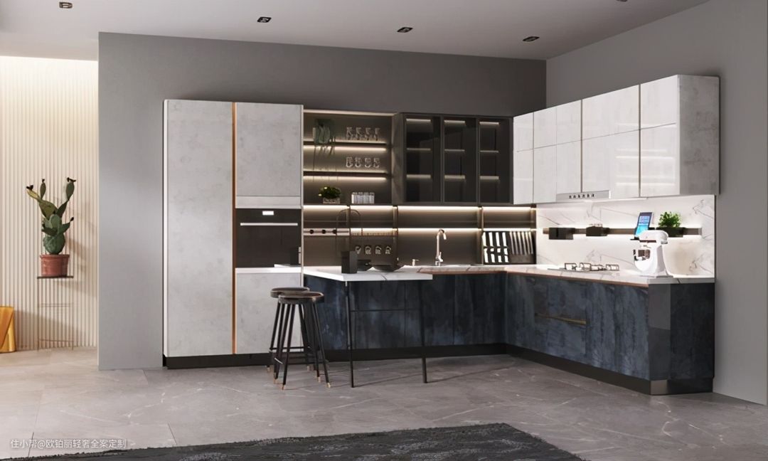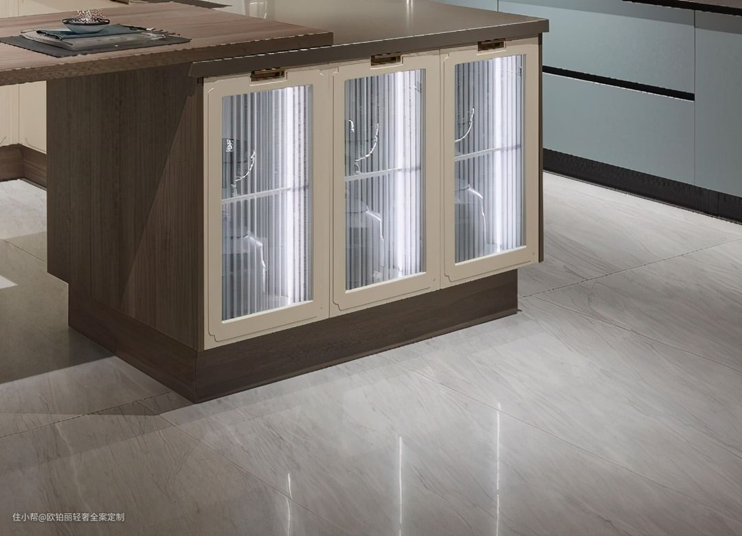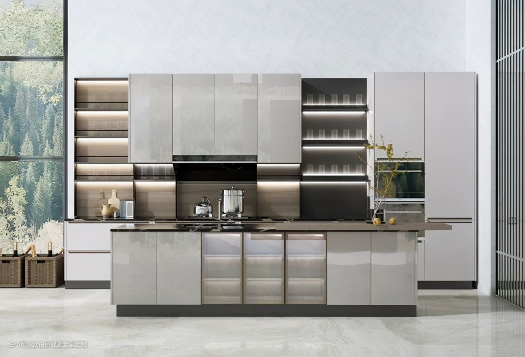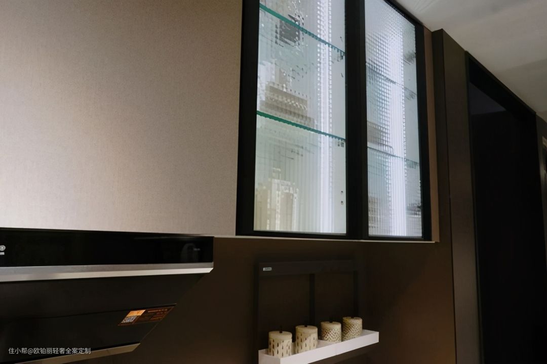 物件多而杂的柜子,和深色玻璃更配,因为它能“藏乱”。金属边框或内嵌层板灯带,能提升格调。