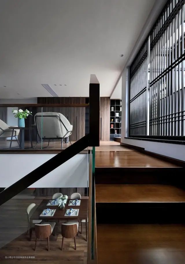 ▲书房后的楼道边上加入一道屏风,使得空间明亮私密而又优雅高级。