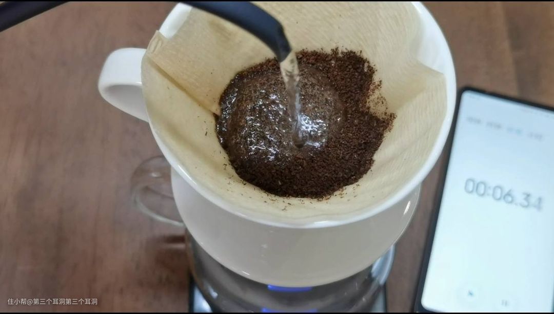 比如做手冲咖啡,就会用到电子秤来称咖啡豆和水的量。做一杯手冲需要15克咖啡豆和230ml的水。