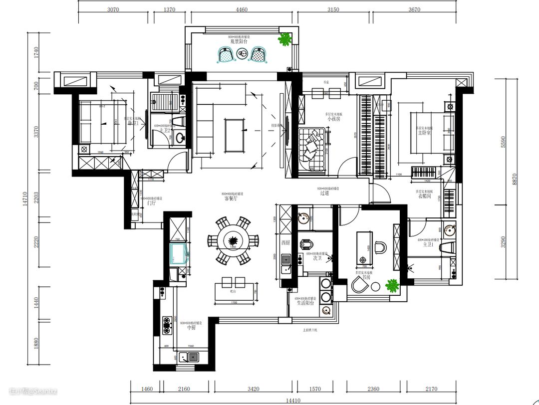 我新房的户型图如下,189㎡的户型。