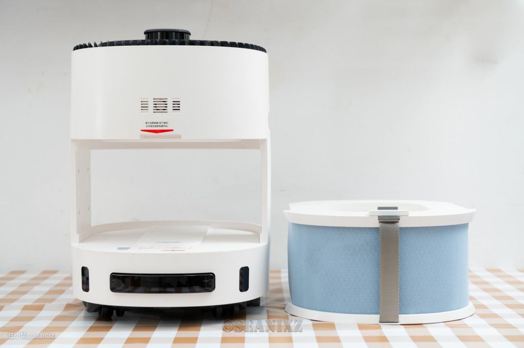 最后是开机步骤,上层有个快速使用指南的贴纸,步骤与扫地机器人一致,需要下载APP配网使用。当然也可以直接通过按键来操作,操作不复杂,按键为开机、风量、模式选择,算得上简单易用的产品。