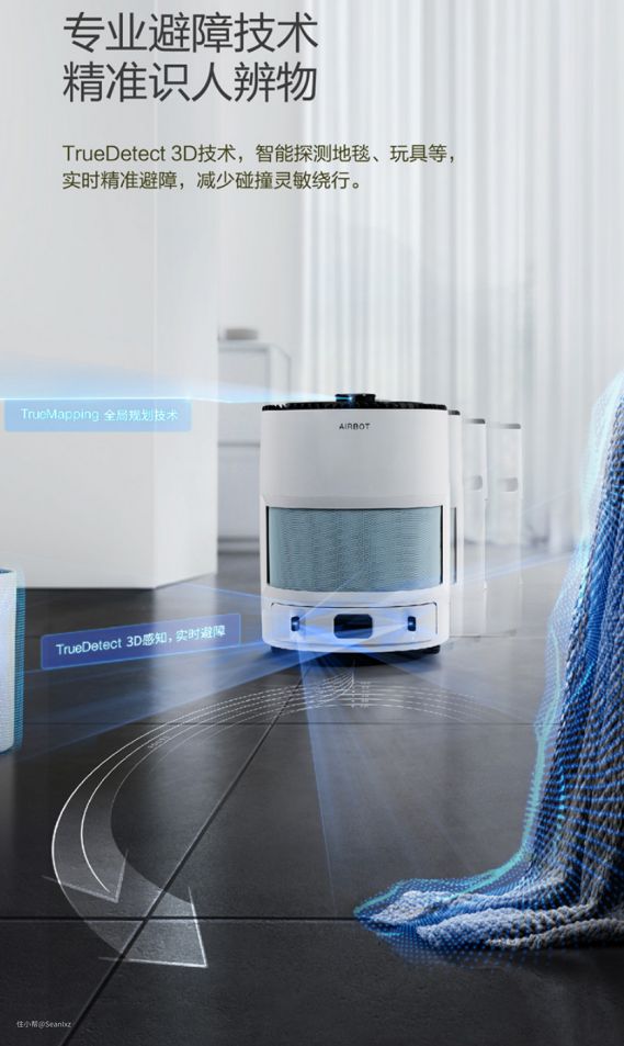 避障技术科沃斯官方称作True Detect 3D技术,已经用在了自家的高端扫地机器人上,具体作用就是通过发射线激光后,接受反射回来的激光信号来识别障碍物,并通过运算来精准的避开障碍物算是真正能看见的导航了。