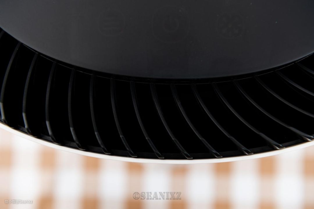 中部是一个环形滤芯,H13级HEPA过滤,这个等级没什么问题,是高端空气净化器中的高水准滤芯了。更为值得一提的是,沁宝采用了外漏式滤芯设计,同等性能产品对比体积更小,风阻更小;理论上可增加40%滤芯的设计体积,用料更加扎实;