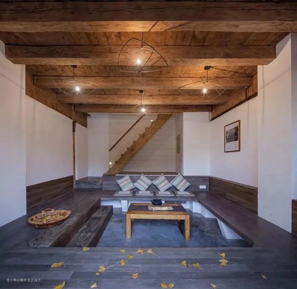 有条件的话还能打造一个茶室,不论是招待亲朋好友还是平时休闲的时候在这里品品茶、看看书什么的,下沉式茶室都非常的合适!