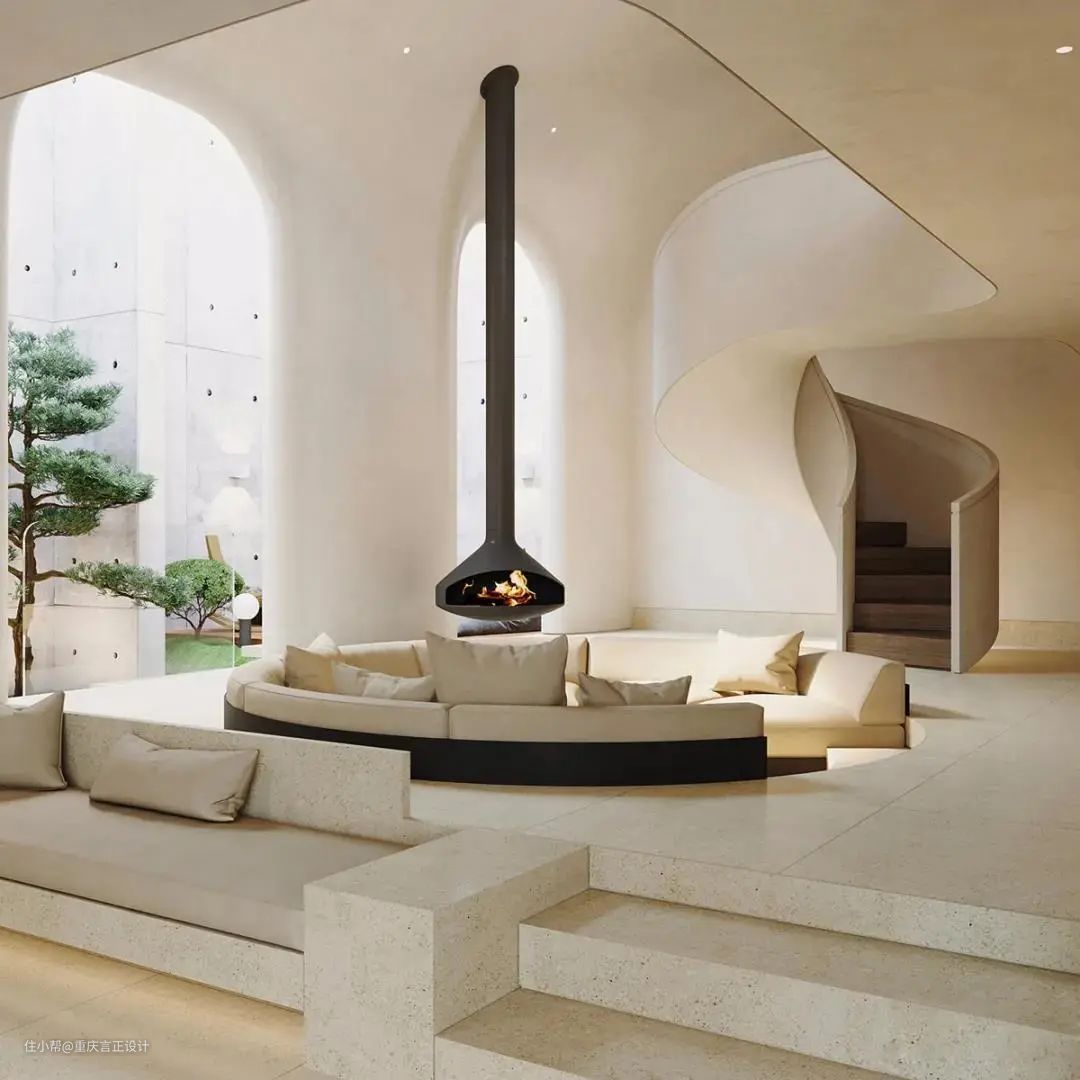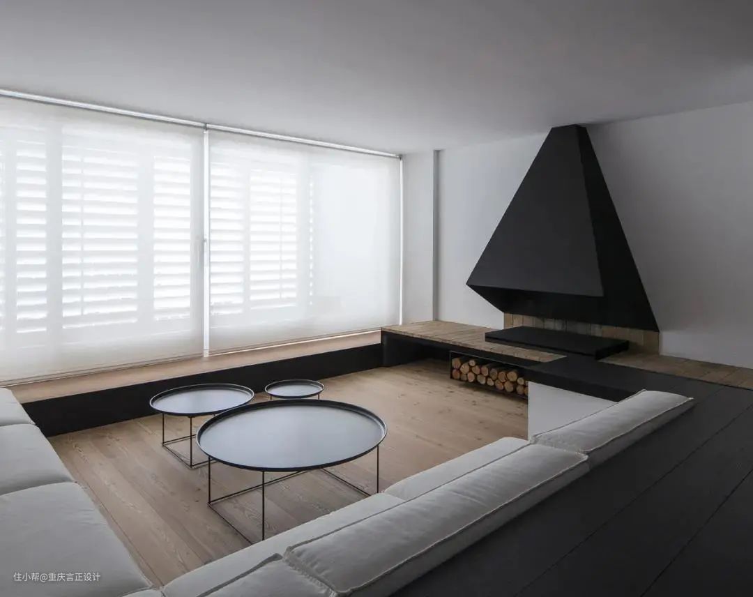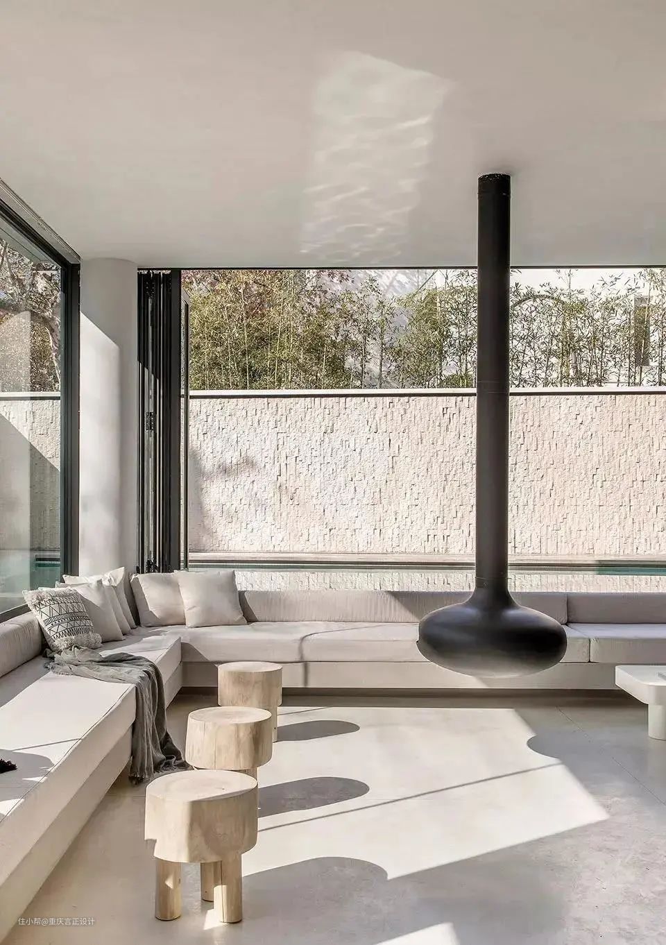 而且这种“篝火围坐式”的布置,更方便家人和朋友间的感情交流,非常的个性,瞬间让客厅成为主角~