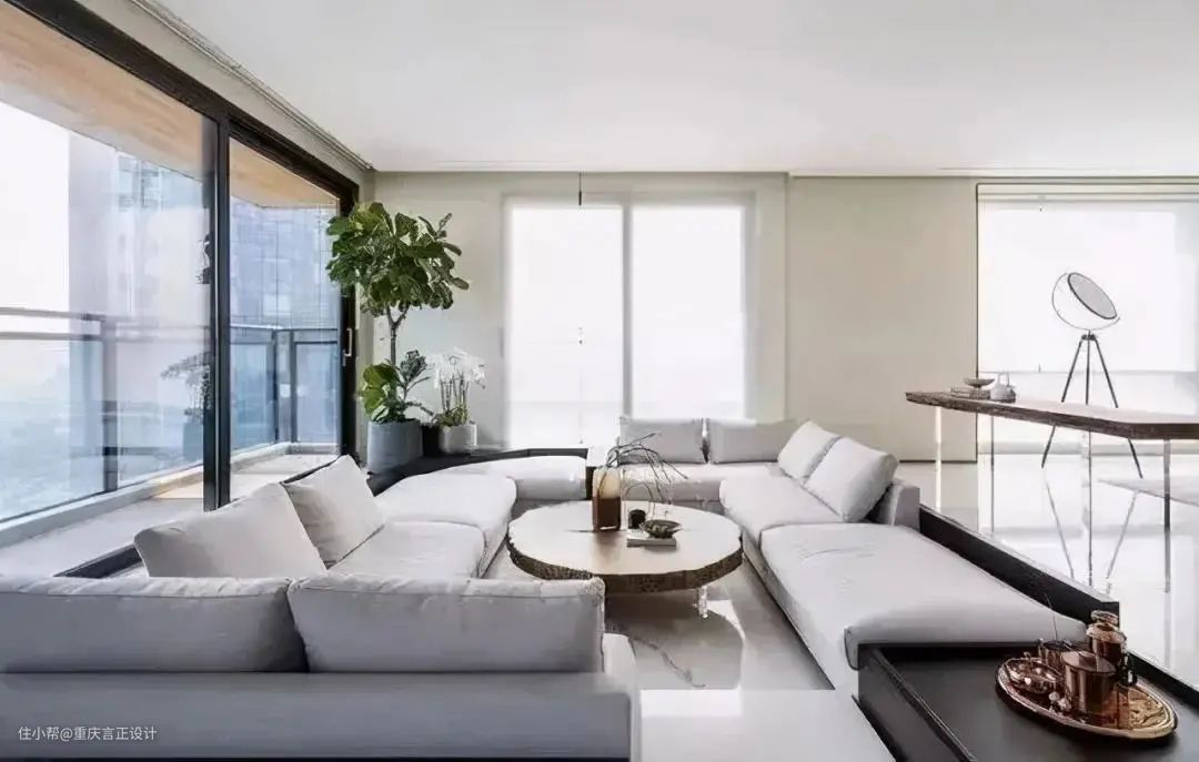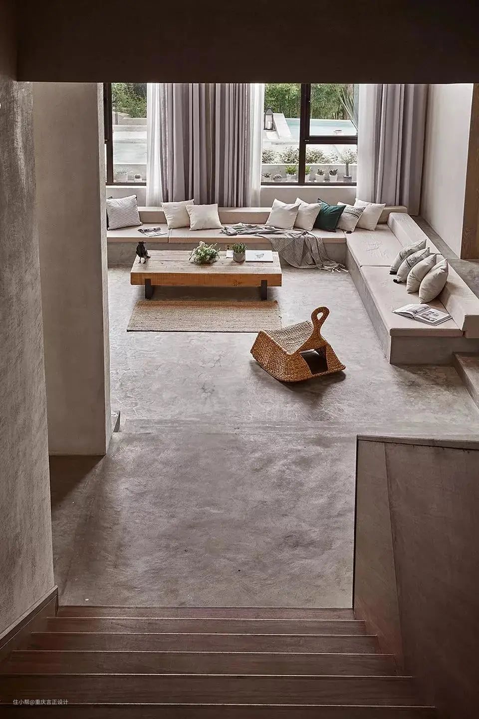 ①如果客厅面积小、挑高<3m的话呢,就不建议打造下沉式。②一定要保证采光充足,最好是带阳台或落地窗的客厅。③沙发最好有靠垫,入座更舒适也更有仪式感哈~④抬高客厅周围地面的铺设,不建议铺地砖,可能会出现空鼓的情况,建议做成自流平或者木质地板。