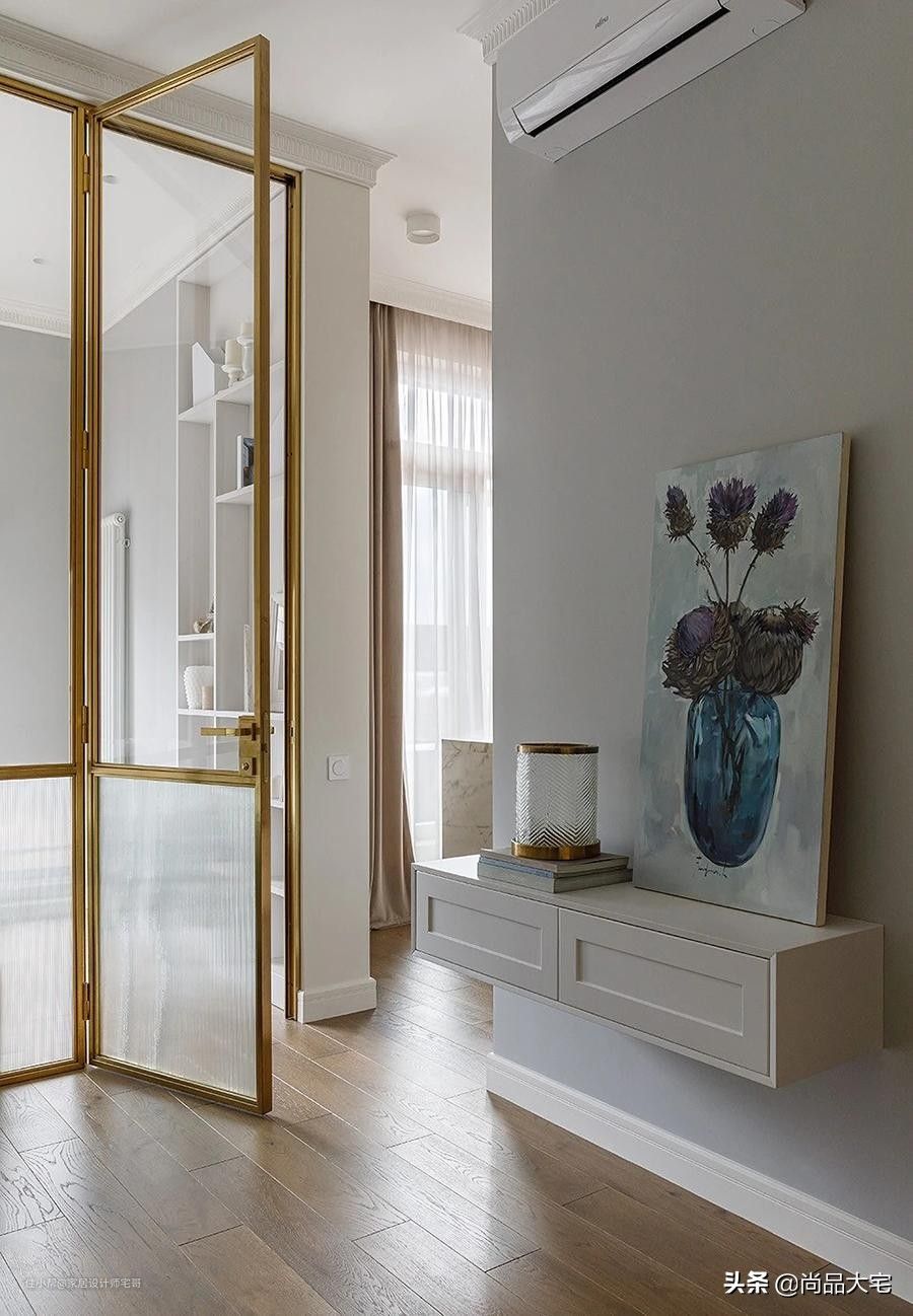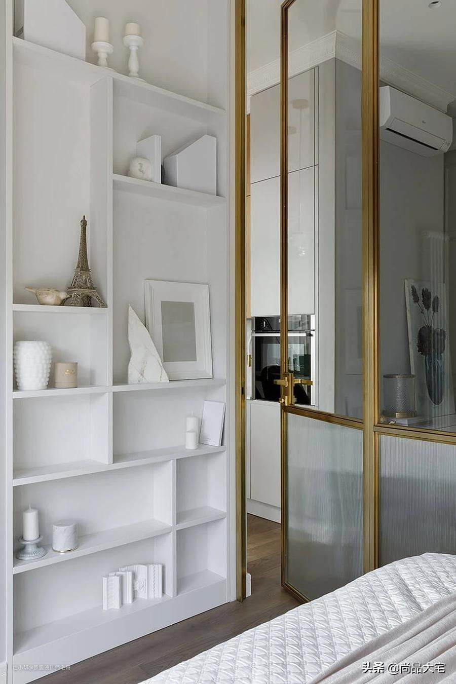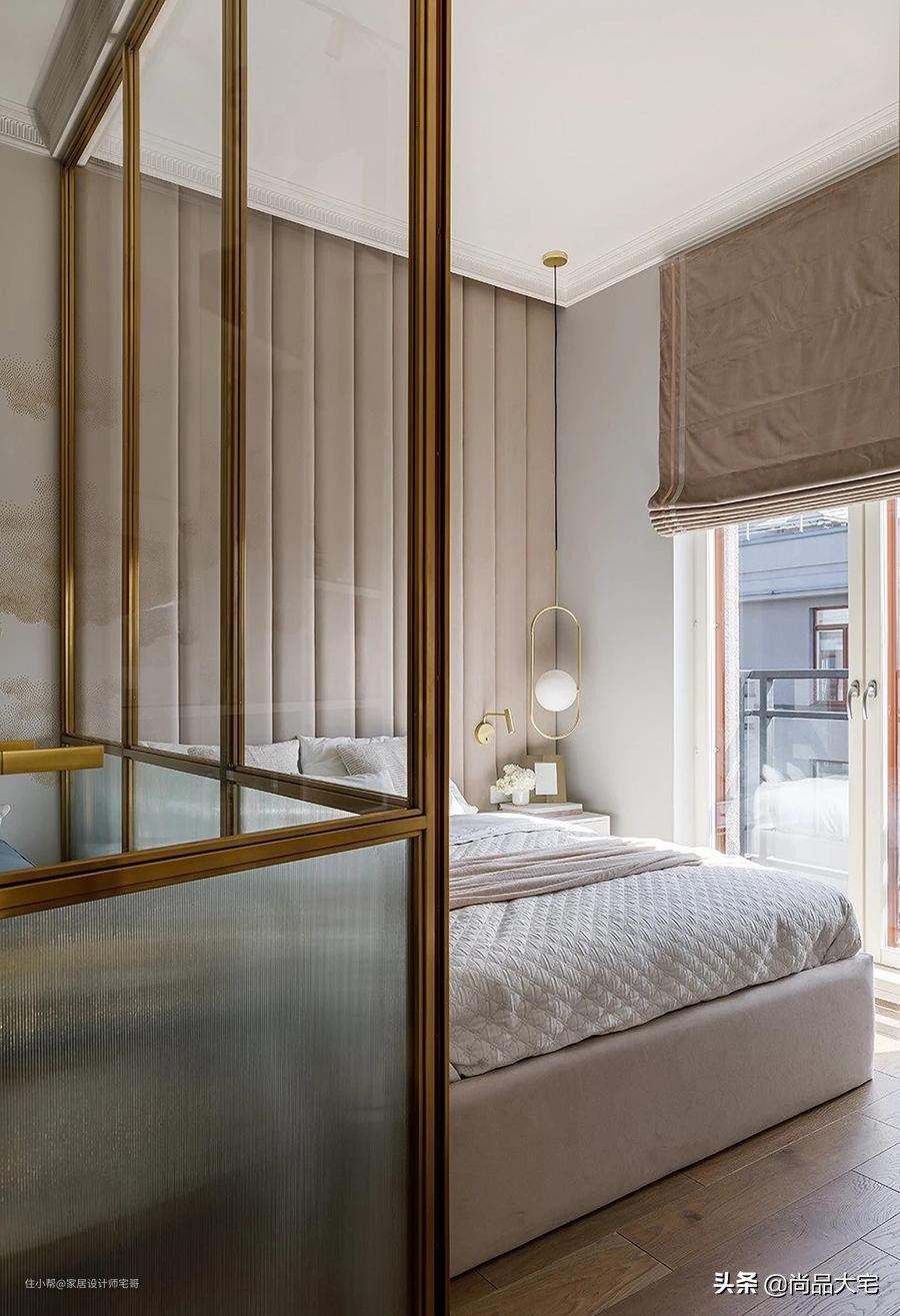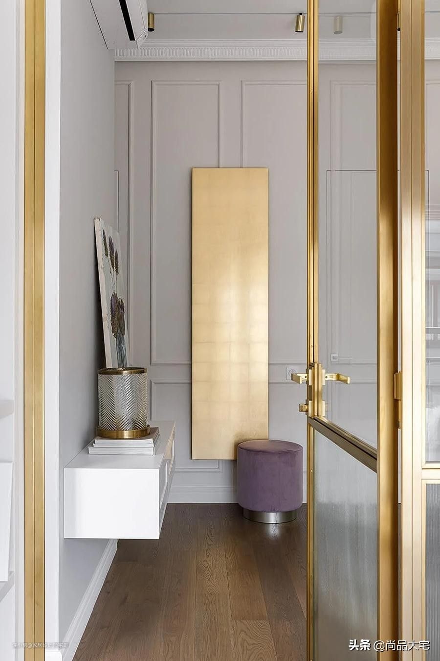 衣帽间旁边的黄铜色装饰通过光线反射,散发出温暖的色彩,让室内空间更加温馨。