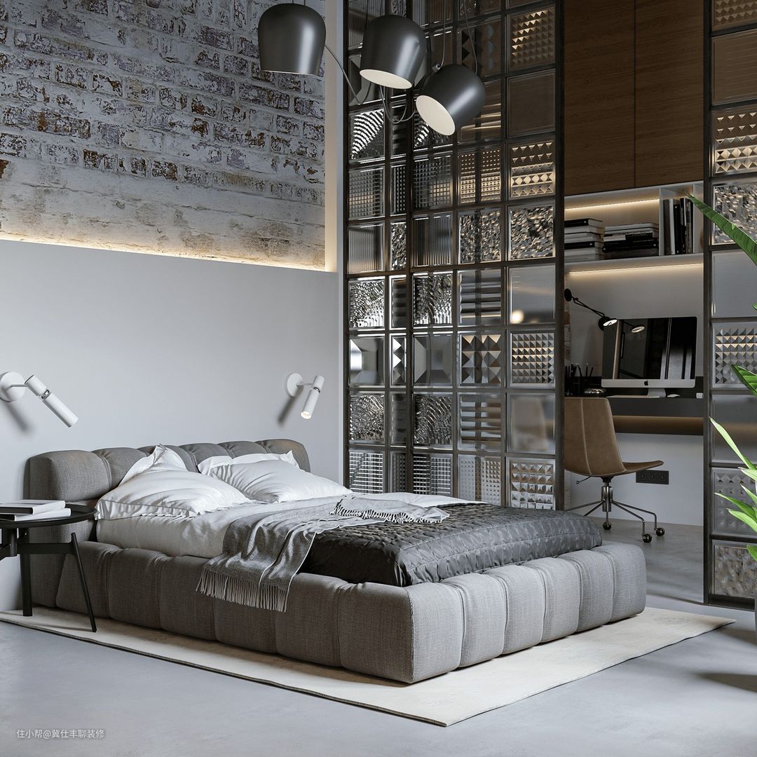 ▲ 不要以为玻璃砖只能用来做固定的实体隔断呦,看看这个案例,在书房和卧室之间选择了玻璃砖作为推拉门,是不是颜值也很高?