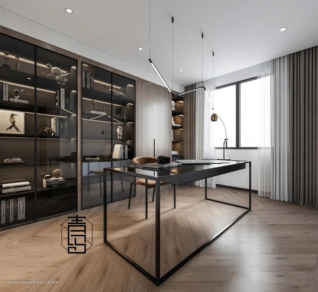 在更能体现生活仪式感的书房空间,金属、玻璃和镜面材质的粲然光感完美交融,营造出空间的优雅美好,凝结着都市生活的轻奢享受。