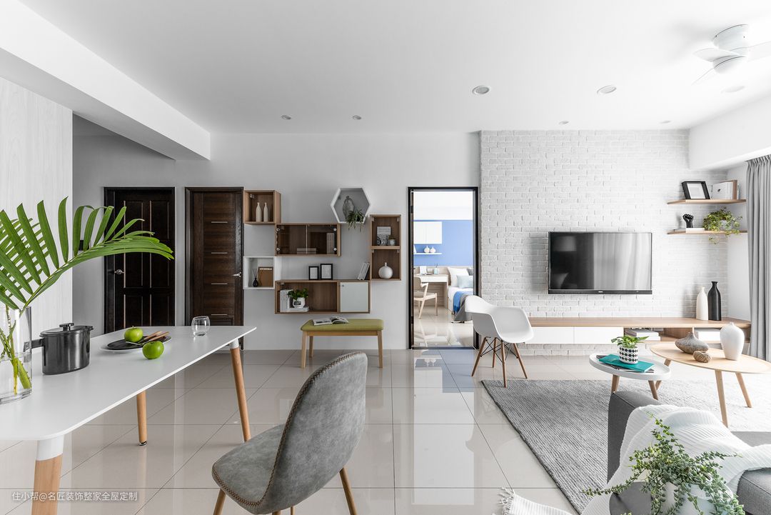 学习区尽量靠近客厅某个角落并且要大小适宜;会客区则应该保持通道简洁、明亮宽敞、具备通透感;娱乐区布置灵活,能够随时释放空间。并且,各个局部区域的格调应该与全区的基调保持一致。