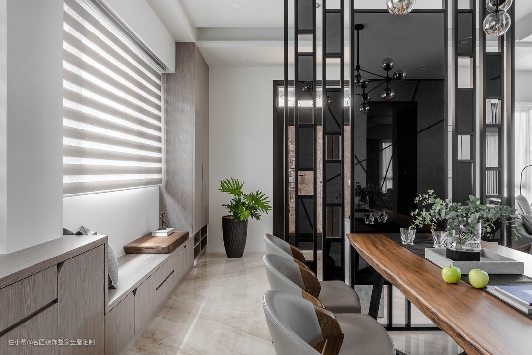 "软隔断"则不会影响空间的大小,只需要通过空间高低的不同、灯光不同、家具不同或者使用的材料不同来进行分区即可。