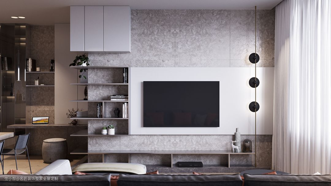 客厅要懂得利用墙面垂直空间,统一定制柜体,不仅能够让空间利用更加合理,同时看起来更加协调。