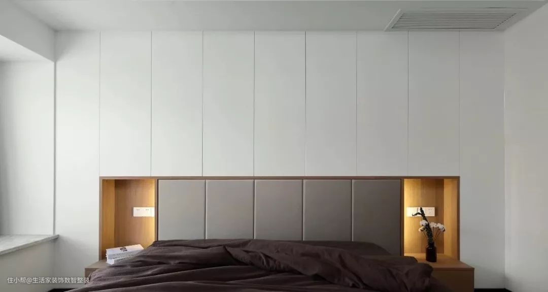 ▲ 或者设计床头背景的时候挖出一部分做壁龛,把整个墙面加厚做壁龛也是一样的道理,这个话题之前也单独写过《只要移床10公分,装修鸡肋变鸡腿》