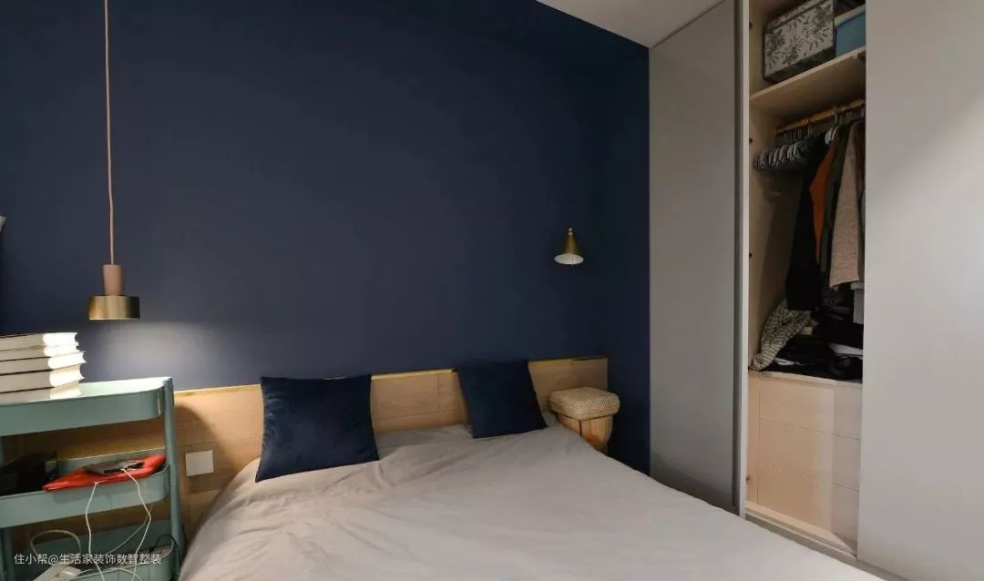 传统装修思维都是床两侧对称放2个床头柜,有些房间宽度有限的话,只够放下1个床头柜,再小也许连1个都放不下了。但是,床两侧一定要放床头柜吗?其实不一定的,本文不仅是探讨房间小的问题,我们也顺便探讨一下传统的床头柜到底有没有必要用?