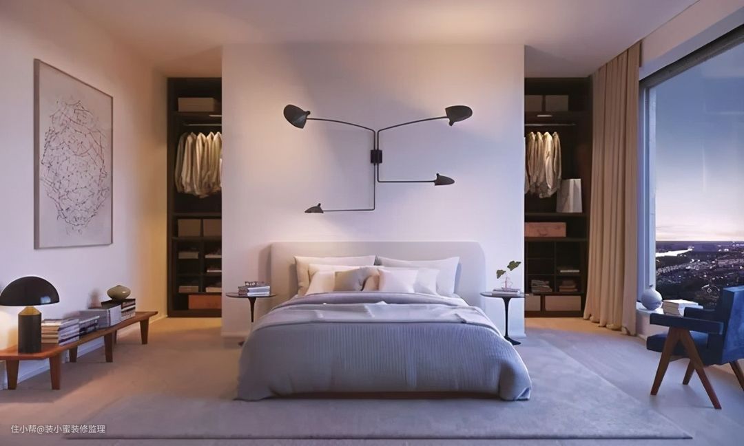 户型图也很简单明了,直接以双人床为中心,用圆规画个圈,跟孙悟空给唐僧画的安全圈差不多。