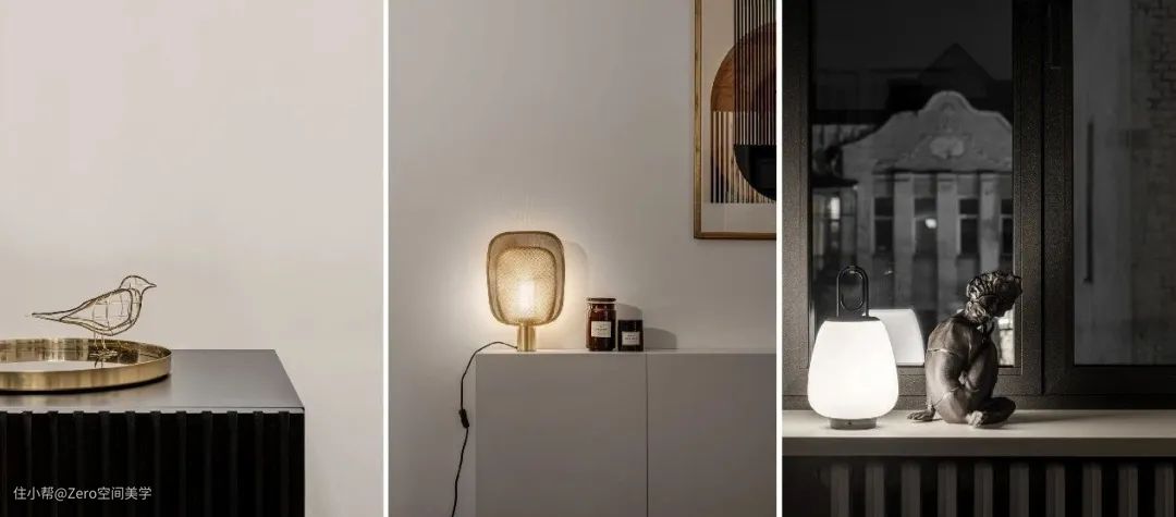 低调的留白背景墙,进一步凸显造型简洁利落的家具饰品,形成鲜明对比。