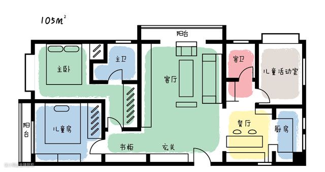 儿童房,本来也要靠墙打造一排柜子,后来作罢。▼